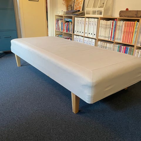 Rigtig god seng med lækker Topmadras i hvidt materiale med skumkerne. Overfladen har quiltet mønster, og madrassen er beregnet til at ligge oven på en seng eller madras for at give et ekstra komfortlag. Velegnet til almindelig brug i soveværelse eller gæsteværelse.