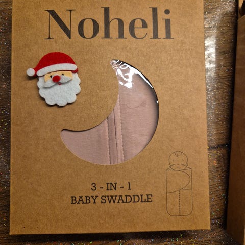 Blødt og åndbart Noheli svøb 3-i-1 i lyseblå til babyer 0-4 mdr. Giver tryghed, reducerer uro og fremmer bedre babysøvn.