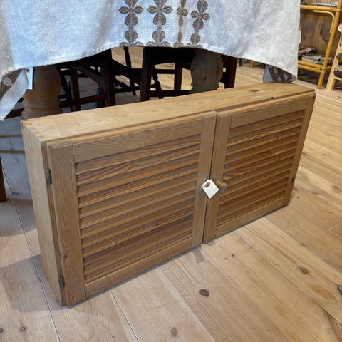 Lille fint retro badeværelsesskab i fyrretræ med jalousilåge