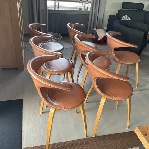 Sælger 8 eksklusive Vienna spisebordstole med drejefunktion, designet af Henrik Pedersen.