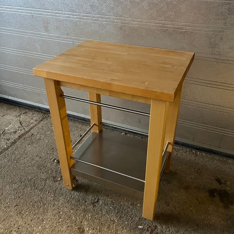 Sælger vores IKEA FÖRHÖJA rullebord i massiv birk – smart køkkenø på hjul