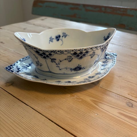 Royal Copenhagen musselmalet helblonde skål i 1. sort. Den har nr. 1015
