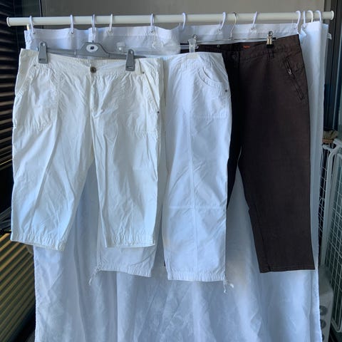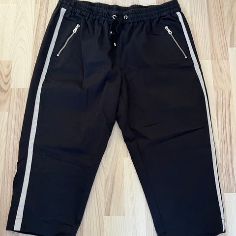 3/4 lange sommerbukser, mrk. Pure instinct. Str. M - svarer til ca. str. 38-40. Beige. Med 2 skrålommer foran samt 2 små lynlåslommer. Pynt i form af 2 knapper ved lommer samt 3 knapper til pynt på hvert bukseben. Elastik i livet og derfor fleksible.