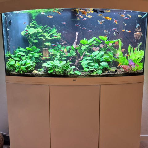 Hej søger en juwel 450 liters akvarie i mørk træ helst et vision