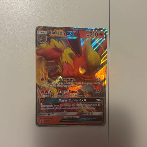 Flot Flareon EX Pokémon kort sælges. Kortet er i fin stand og har været opbevaret forsvarligt. Ingen bøjninger eller større skader, kun muligvis små skrammer. Perfekt til samler eller Pokémon-fan 🔥
