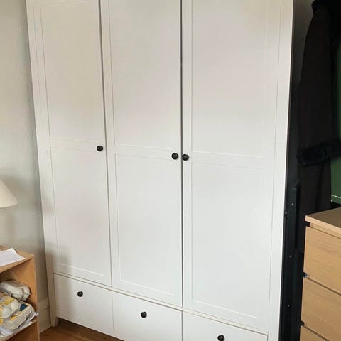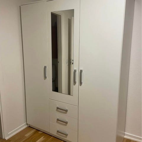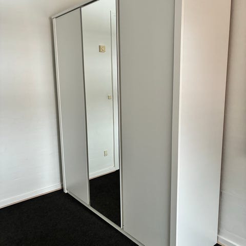 Skabet indeholder 10 hylder og 2 tøjbøjler.