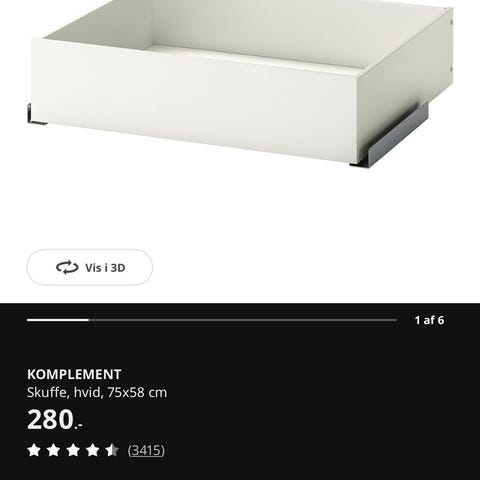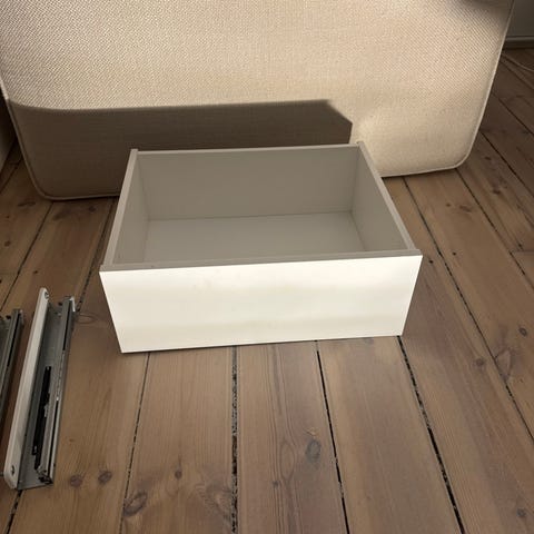 IKEA KOMPLEMENT skuffer i hvid sælges, da vi skal flytte tiny house ifbm. renovering og derfor er nødt til at indskrænke os lidt.