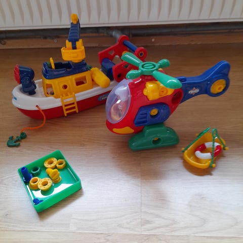 Saml-selv rumbil, jeep, helikopter og flyvemaskine