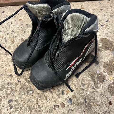 Ski sko til lille barn. Passer til de mest almindelige bindinger langrendski. Rottefella NNN. Næsten ubrugt. Varme og gode. Relativt ny model fra Alpina. Købt i Norge.
