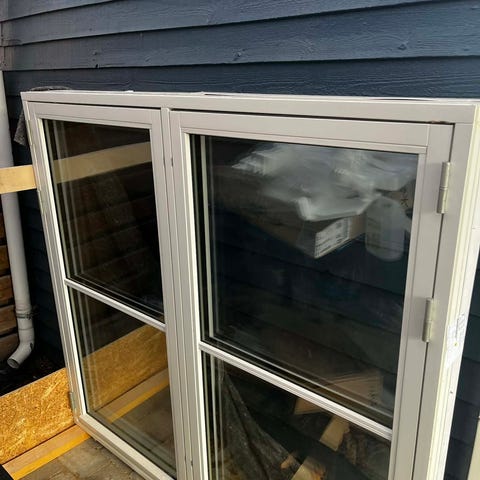 3 lags glas. Vinduet er højt og smalt. Mål: H: 186 cm og B: 38 cm.
