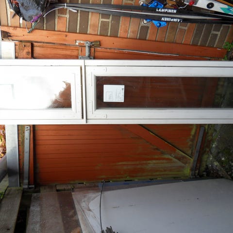 Termovindue i fast trækarm, hvidmalet.