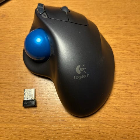 Trådløs Logitech mus M/N : M- RBA 97 til opladning, så den er altid klar til brug. Brugt, men virker perfekt, har mange manøvreknapper indbygget