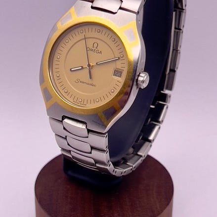 Omega Seamaster Polaris ref. 386.0822 fra 1990 i fin stand (små ridser/hairlines). Urkassen måler 32x36 mm og den kommer med æske, manual, ekstra led og købsbevis. Servicehistorik er ukendt. Leveres i æske med tilhørende papirer og ekstra lænkeled, som ses på billederne.