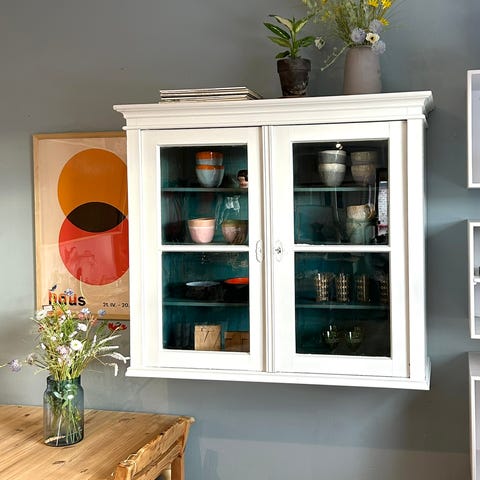 Meget fint og velholdt vitrineskab. Indhold medfølger ikke.