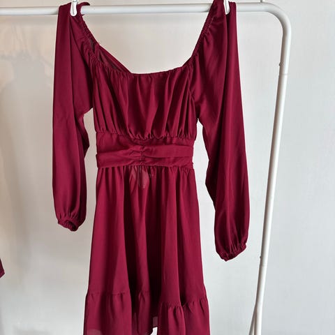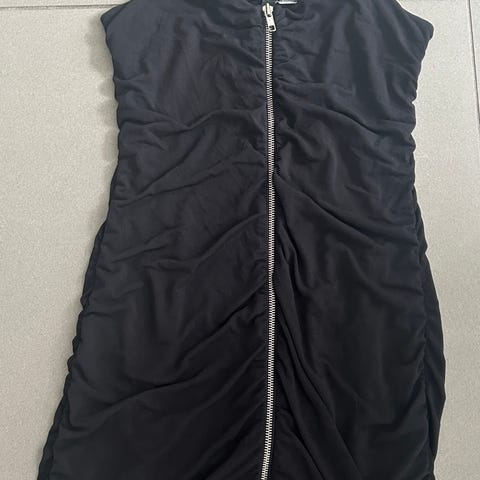 H&M fest/cocktailkjole i sort til dame. Kjolen er i str. 38 og fremstillet i polyester. Modellen er figursyet med lynlås i ryggen og slids bagpå. Velegnet som fest- eller cocktailkjole.