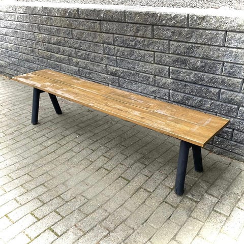 Mål bænk: 200 cm * 46 i højde men kan justeres i bunden og være højere eller lavere.