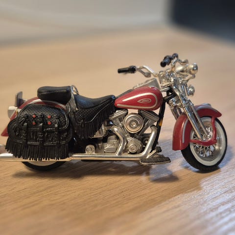 Til salg er en samlermodel af Harley-Davidson FLSTF Fat Boy motorcykel.