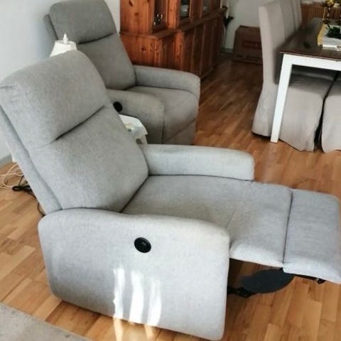 Den kan nemt justeres med el, så du kan læne dig tilbage og få benstøtten op – meget komfortabel til afslapning, tv eller læsning.