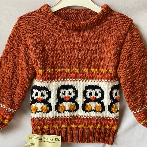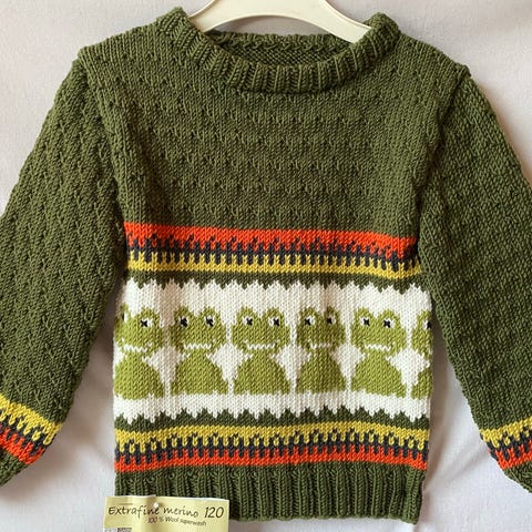 Blusen er strikket til min ældste dreng og holder sig virkelig flot.