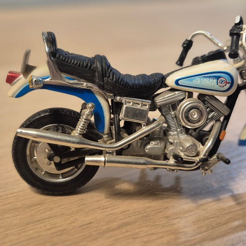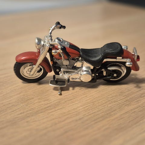Jeg sælger en detaljeret samlermodel af Harley-Davidson 1999 FLSTS Heritage Softail Springer motorcyklen i skala 1:18. Modellen er et produkt fra det berømte Maisto-mærke og er en tro kopi af en af de mest genkendelige retromodeller i Harley-Davidsons historie.