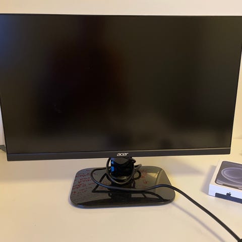 Acer B247Y skærm på 24" i sort. LCD-monitor egnet til brug med stationær computer. Skærmen står på en rektangulær fod med justerbart stativ. Tilslutninger og øvrige tekniske specifikationer fremgår af mærkaterne bagpå skærmen eller i produktets manual.
