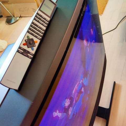 Bang & Olufsen MX7000 CRT fjernsyn med indbygget højttaler i fronten.