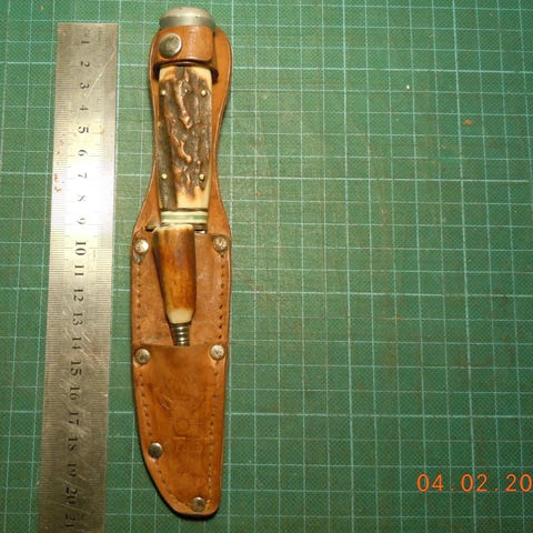 SJOV GAMMEL KNIV MED TYSK ØRN OG TRÆSKÆFTE. L. 35 CM. KLINGE 22 CM.
