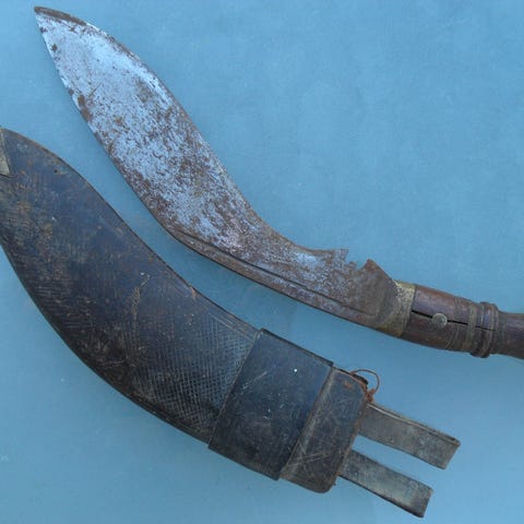 SJOV GAMMEL KNIV MED TYSK ØRN (DEFEKT) OG TRÆSKÆFTE UDEN SKEDE . L. 35 CM. KLINGE 22 CM.