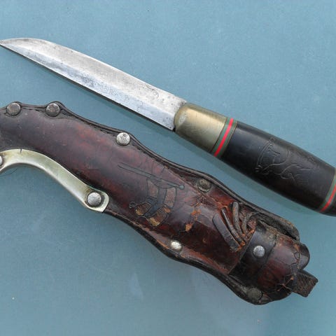 SMUK GAMMEL PUMA KNIV , WHITE HUNTER NO. 6377 MED ORIGINAL LÆDERSKEDE