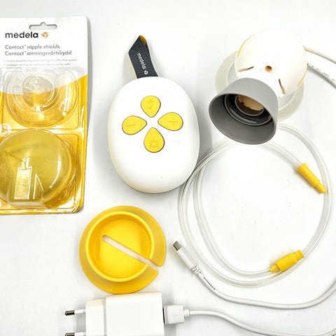 Det medfølger en pakke uåbnet poser til at opbevare mælk, samt man kan få tre bøtter med som jeg har fået fra sygehuset.