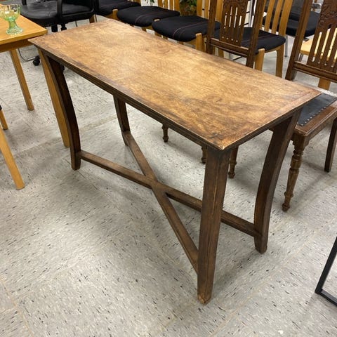 Møblet er en træbord med to hylder. Det har drejede ben og en skuffe. Lys brun.,Afhentes i:,Røde Kors Kolding (621),Bemærk at mail, chat og beskeder ikke besvares, og varen skal købes på knappen "Gå til varen"
