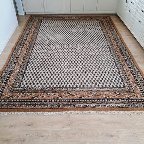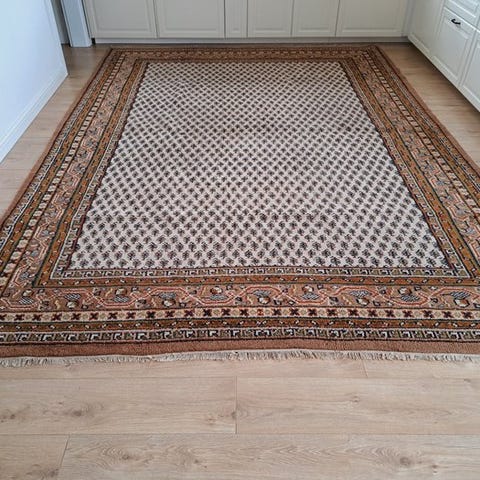 Med stor fornøjelse præsenterer vi Dem dette smukke iranske håndvævede uldtæppe Mir med målene 220x250 cm.