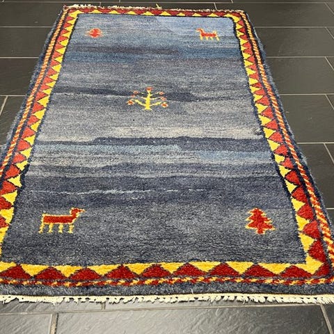 Tilbuddet omfatter et håndknyttet orientalsk tæppe i en kollektion (Her: 2 stk.) fra provinsen Gabbeh.