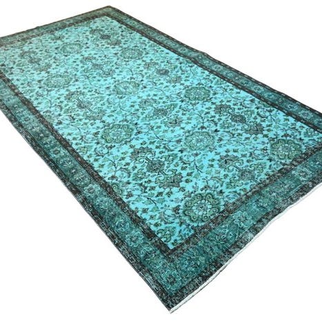 Turkis vintage tæppe, håndlavet i Tyrkiet, uld på bomuld, målene 110 cm bredt og 205 cm langt, farve turkis, i meget god stand og professionelt renset, model Turquoise vintage, med certifikat. Klik på den blå "gå til varen" knap, for at købe eller byde på denne vare. Den samlede pris vil blive vist inden du afgiver dit bud.