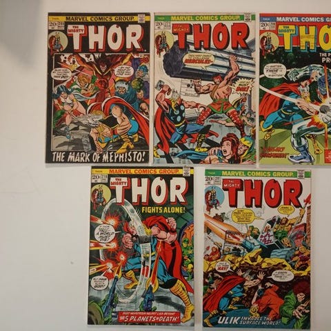 The Mighty Thor vol.1, Marvel Comics, 1969, to numre (#161 og #162) af Jack Kirby, på engelsk, binding spillato, samlet set i god stand, hvor #161 er i dårligt stand og #162 i god stand. Klik på den blå "gå til varen" knap, for at købe eller byde på denne vare. Den samlede pris vil blive vist inden du afgiver dit bud.