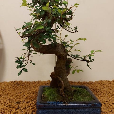 De Zelkova bonsai, også kaldet Japanse iep, udstråler ro og elegance. Med sine fine grene, takkede blade og elegante form er den et symbol på balance og naturlig skønhed. Denne stærke og elegante træ ændrer sig med årstidernes skiften, fra friskgrønt om foråret til varmt gyldent om efteråret.
