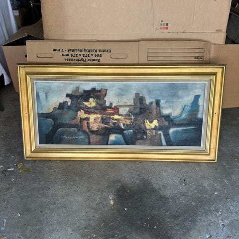 Maleriet vil blive afsendt i en pappkasse af GLS eller FedEx-kurér.