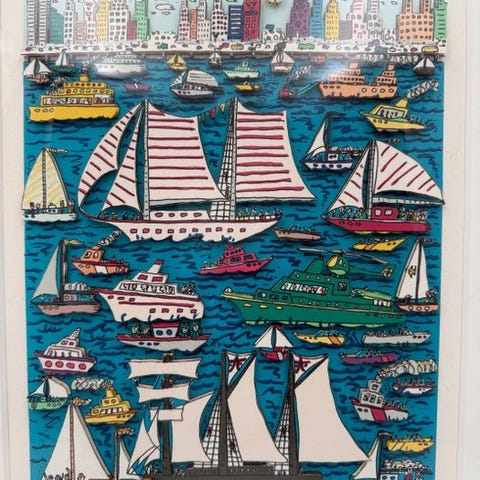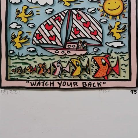 “Stampede on Wheels” af James Rizzi (after), 1995, offsettryk i en begrænset udgave, 41 × 31 cm indrammet under plexiglas, signeret i pladen, i god stand, oprindelse USA, Pop Art med popkultur tema. Klik på den blå "gå til varen" knap, for at købe eller byde på denne vare. Den samlede pris vil blive vist inden du afgiver dit bud.