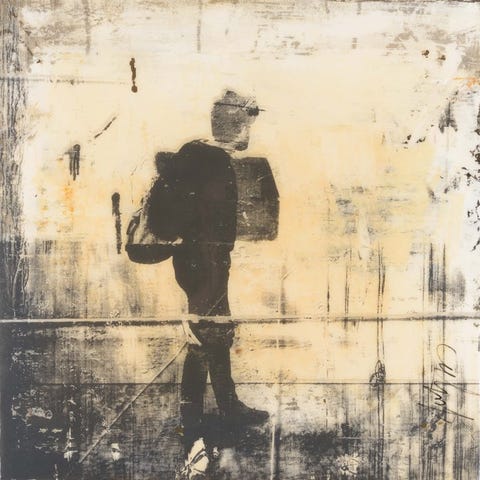 Meget smukt tidligt værk i akryl på lærred af Frits van Eeden "Rytter" pænt signeret fra 1974.