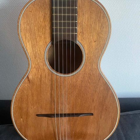 Palma folk/blues parlor elektroakustisk guitar, model '(Mrkneukirchen) Folk/blues parlor électro-acoustique', år 1950, Tyskland, i god funktionsdygtig stand. Klik på den blå "gå til varen" knap, for at købe eller byde på denne vare. Den samlede pris vil blive vist inden du afgiver dit bud.