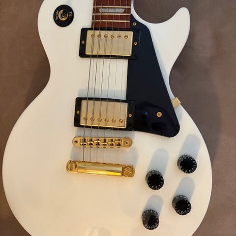 Jeg lægger denne pragtfulde Gibson Les Paul Studio Ebony op til auktion, årgang 2015, et instrument der slår én ved første blik med sin dybe sorte elegance og som definitivt overbeviser, så snart man spiller første akkord.