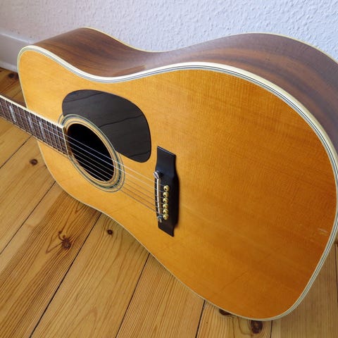 Miyata No. 35 Otsuka Gakki Seisakusho guitar, fremstillet i Japan i 1964, i rimelig stand og testet og i funktion, vægt 2 kg, spilbar med nylon- eller stålstrenge og med en gammeldags folklyd; inkluderer ingen tilbehør. Klik på den blå "gå til varen" knap, for at købe eller byde på denne vare. Den samlede pris vil blive vist inden du afgiver dit bud.