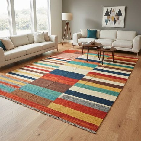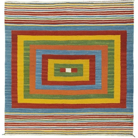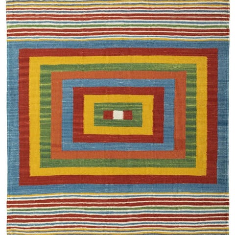 Opdag denne smukke Kilim, der er håndvævet med stor kærlighed til detaljen. Denne ægte Kilim imponerer med sit unikke design og de lyse farver, der beriger ethvert rum.
