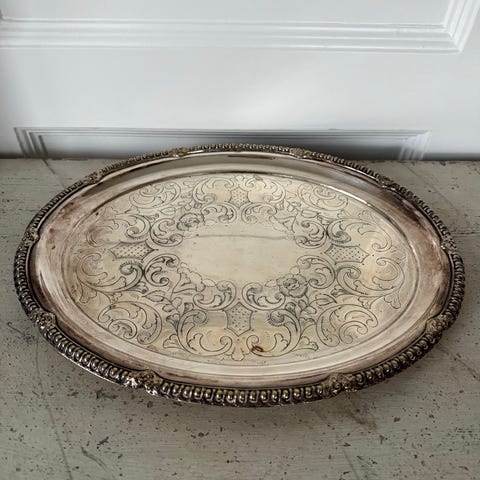 Beautiful Silver on Copper Serving Tray – England – Ornate Engraving – 58 × 3...