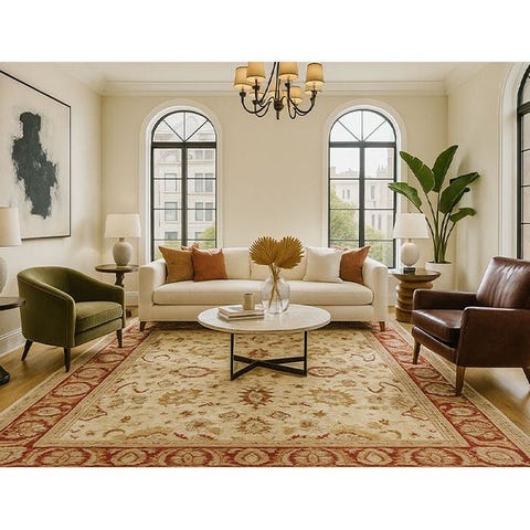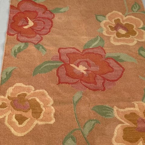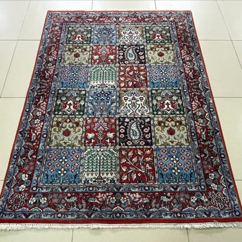 Håndknyttet tæppe i Indien inspireret af de gamle mønstre, der blev lavet i Agra i Mogul-dynastiets tid.