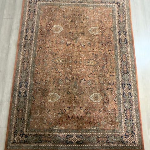 Oprindelse: Tyrkiet; Orientsk tæppe vævet i hånd i uld på bomuld, 323 × 245 cm, flerfarvet i beige og røde nuancer, i meget god stand, professionelt renset, vægt 39 kg, fremstillet i slutningen af det 20. århundrede, med certifikat for ægtehed. Klik på den blå "gå til varen" knap, for at købe eller byde på denne vare. Den samlede pris vil blive vist inden du afgiver dit bud.