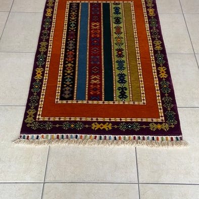 Dette uldtæppe er nyt og håndlavet.