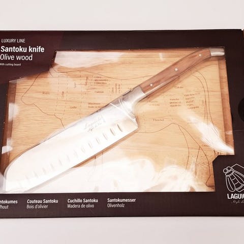 Laguiole - Santoku Knife - with cutting board - Olive Wood - Køkkenkniv - Rus...