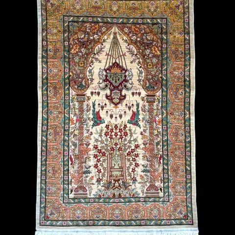Håndlavet tæppe - Hereke fra Tyrkiet - signeret og meget fint – Unik genstand / samlerobjekt!