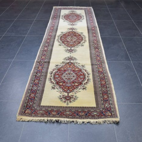 Fra Tyrkiet, Konya-modellen, håndknyttet orientalsk tæppe i uld på bomuld, 237 cm x 174 cm, flerfarvet, i særdeles god stand, professionelt renset og med ægthedscertifikat. Klik på den blå "gå til varen" knap, for at købe eller byde på denne vare. Den samlede pris vil blive vist inden du afgiver dit bud.